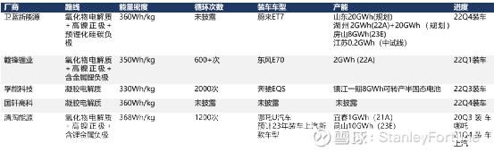 图:主要半固态电池厂商产品对比